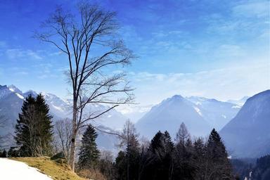 Keywords: landscape nature mountains mountain peaks outlook trees sky clouds snow vorarlberg