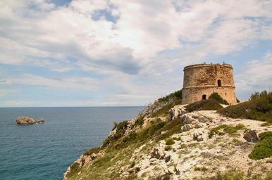 | Keywords: landscape nature summer away tower clouds rock formations rock sky building architecture watchtower island defense system defensive tower cliffs historically fixed fortress sea water ocean mallorca holiday coast rocky coast mediterranean mountain |