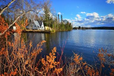 Keywords: landscape nature trees lake water house québec canada