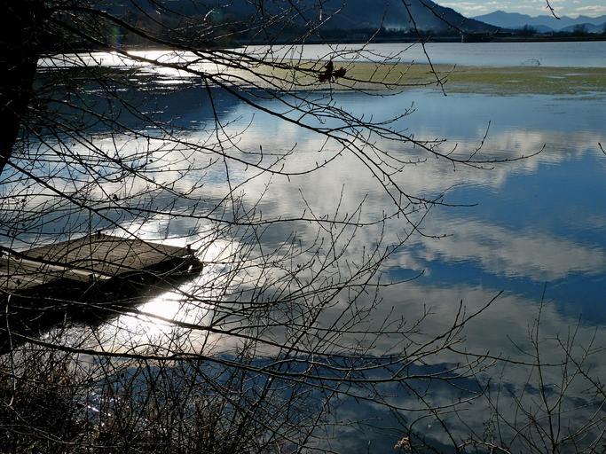 Keywords: landscape nature water lake pontoon reflections clouds fall afternoon contrast