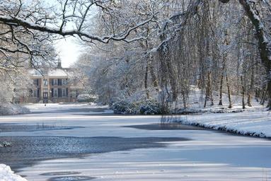 Keywords: landscape nature winter ice freeze snow tree forest frozen manor water