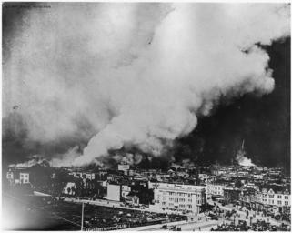 | Keywords: Landscape photograph of San Francisco during the Earthquake and Fire of 1906 - NARA - 296865.tif Scope and content Full caption View over the tops of buildings looking towards the fire to the South of Market area from upper Market Street General notes 296865 Local identifier Department of Defense Department of the Navy Mare Island Naval Shipyard Office of the Commander Office of the Shipyard Historian 1976 - ca 1996 NARA's Pacific Region San Bruno NRHAS 1000 Commodore Drive San Bruno CA 94066-2350 1906-04-18 Record group Record Group 181 Records of Naval Districts and Shore Establishments 1784 - 2000 Record group ARC 510 Subject Files compiled 1976 - 1996 documenting the period ca 1854 - ca 1996 Series ARC 296821 File unit Earthquake 1906 1 of 2 1906 - ca 1980 File unit ARC 296854 Variant control numbers NAIL Control Number NRHS-181-MINSYHISTSUBJ-EQ1906 1 -11<br /> Other Identifier NY9-28400-3-56 yes Other versions NARA-cooperation PD-USGov San Francisco earthquake of 1906 |