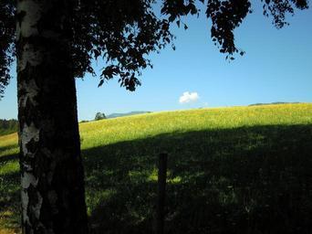 Keywords: landscape plant nature sun sky clouds summer meadow green grass shadow hill sunshine