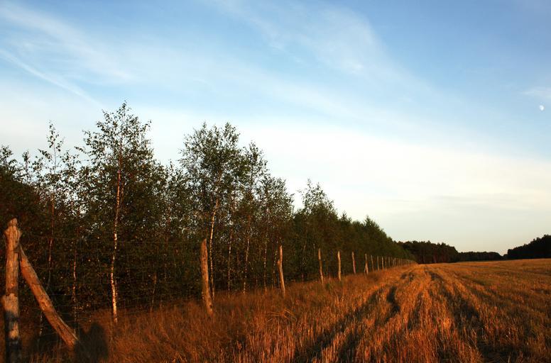 Keywords: landscape poland sky blue scenery nature grass quiet tree the fence birch the ecclesia yields sunset way the rays rays of the sun view sun reflex the sun west field twilight beauty light weather