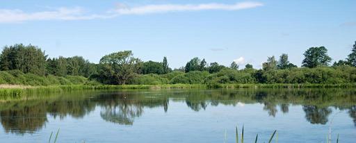 Keywords: landscape pond water mirroring the landscape level sky trees nature surface reflection south bohemia summer clouds forest reeds waterfowl