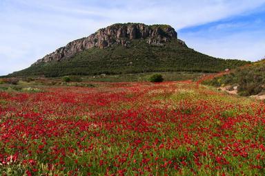 Keywords: landscape poppies field of poppies beauty wild flowers spring clouds mountains red