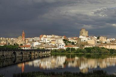 Keywords: landscape river reflection alba de tormes municipality salamanca province spain river tormes peaceful water scenic panorama europe cloudy sky outdoor cityscape town