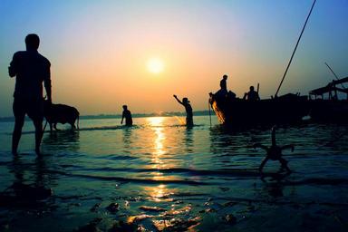 Keywords: landscape river sunset bengal rural villagers
