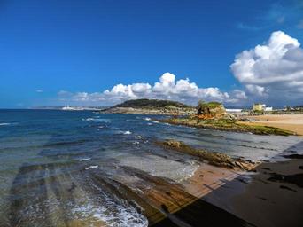 Keywords: landscape sea beach costa nature rocks cliff peaceful clouds blue sun sky summer holiday