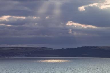 Keywords: landscape sea sunbeam clouds lighting dramatic hill forest coast water beach lake waters abendstimmung evening england