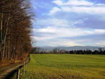 Keywords: landscape sky clouds away meadow grass nature sun rest edge of the woods ambience thurgau switzerland sommeri