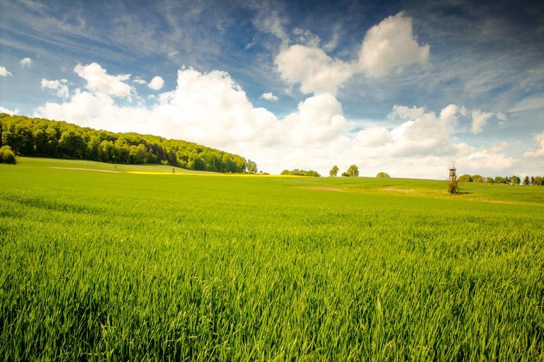 Keywords: landscape sky clouds field green clouds form mood nature edge of the woods atmospheric spring hill bright