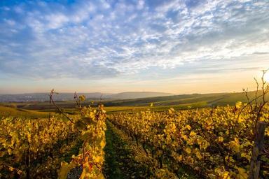 Keywords: landscape sky vineyards hill sun clouds nature freedom wide twilight blue sky naheland bad kreuznach yellow gold green blue bright evening sun wide angle evening mood sunset autumn dusk atmosphere