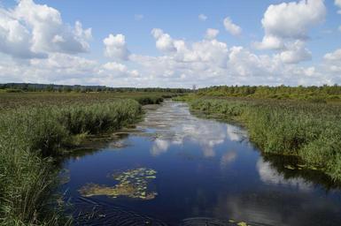Keywords: landscape spring lake nature reserve nature moorland wetland summer grasses reed silted nature conservation southern germany sky clouds summer landscape baden württemberg mirroring water lake coots tributary waters