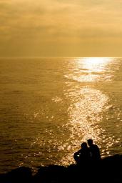 Keywords: landscape sunset sea people silhouette romantic atmosphere love coiple sky orange