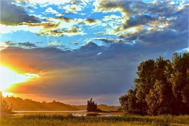 Keywords: landscape sunset twilight evening clouds lake water trees québec canada