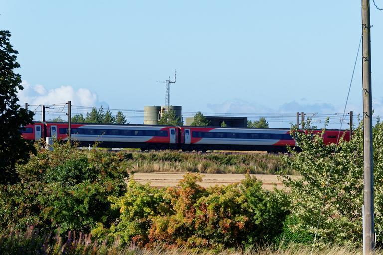 Keywords: landscape train high speed high speed train transport trees scenery train line railway line travel railroad track transportation rail sky nature outdoor journey scenic colorful speed