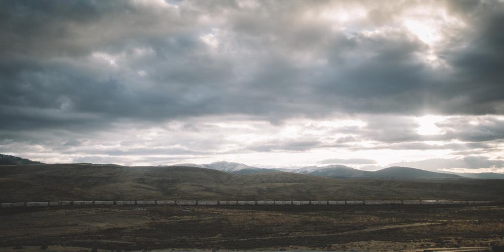 Keywords: landscape train storm clouds cloudy fields mountains hills rural