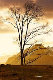 Keywords: landscape tree mountains mountain peaks outlook nature sunrise silent morning back light