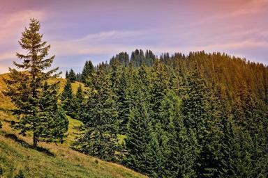 Keywords: landscape trees conifers sky alm alpe nature