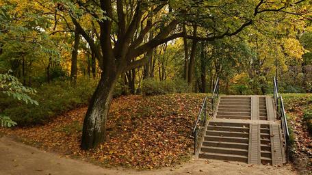 Keywords: landscape view nature plants park concrete stairs tree