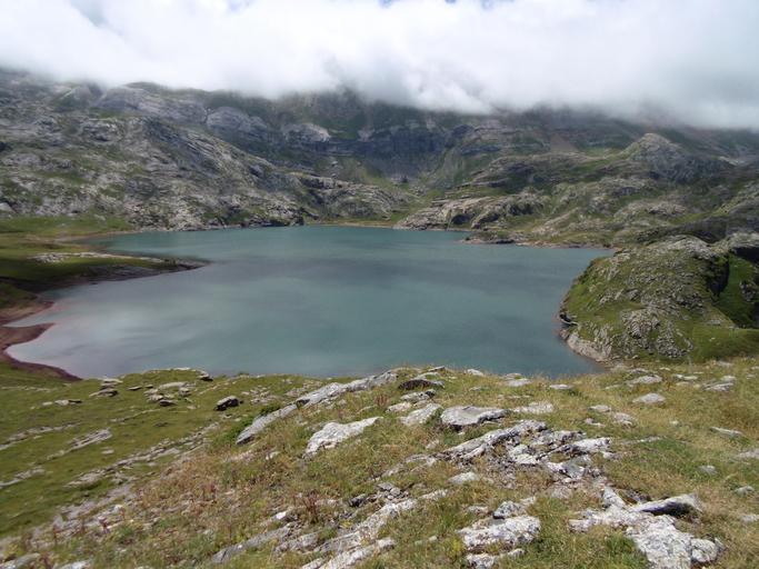 Keywords: landscape views lake nature clouds mountains rocks pyrenees water