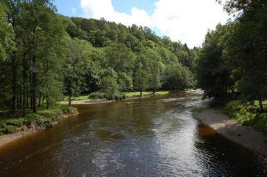 Keywords: river mountain stream forest spring outdoor summer green tourism tranquil hill sunlight tree clear stone natural highland white cloud view rock flow valley sunny grass ecology sun season wood range high blue