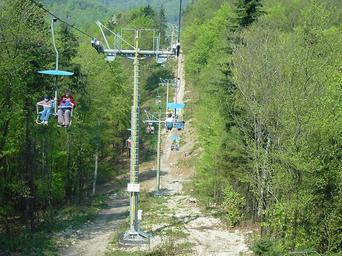 Keywords: Lanovka Kamzik.jpg Cableway in Kamzík Bratislava Slovakia Own spring 2006 Peter Orság PD Sedačková lanovka Železná studnička - Kamzík