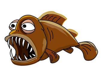 Keywords: lantern fish fish jaw big mouth cartoon character big teeth formidable angry cartoon brown