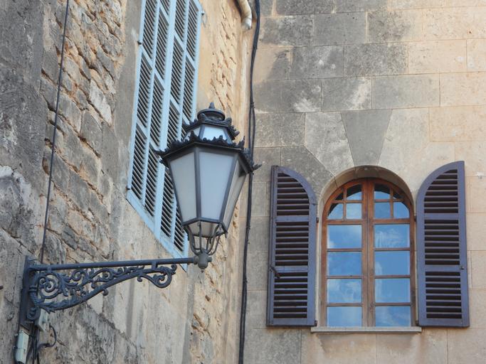 Keywords: lantern lighting street lamp lamp window building city village light home facade masonry alley mallorca