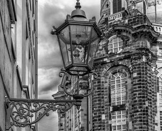 Keywords: lantern lighting street lamp schmiedeeisern frauenkirche dresden blacksmithing metal historic street lighting nostalgia black white