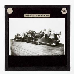 | Keywords: Lantern Slide - Tangyes Ltd, Axle Lathe, circa 1910 (2).jpg Tangye axle turning lathe Size mm 83 83 3 exhibition history Text printed in black ink on white adhesive paper label over black mask TANGYES BIRMINGHAM Institution Museum Victoria Lantern Slide Black White object history One of 239 glass lantern slides depicting products manufactured by Tangyes Limited engineers of Birmingham England The images include various products such as engines centrifugal pumps hydraulic pumps gas producers materials testing machines presses machine tools hydraulic jacks etc Tangyes was a company which operated from 1857 to 1957 They produced a wide variety of engineering products exported worldwide including Australia and other British colonies It is thought that this collection of magic lantern slides was used by a local agent for sales purposes These images were originally used to illustrate Tangyes Ltd product catalogues from the period 1910 - circa 1920s PD-Australia author http //collections museumvictoria com au/items/803600 Info http //collections museumvictoria com au/content/media/23/434973-original jpg Image Uploaded with GWToolset Lantern Slide - Tangyes Ltd Axle Lathe circa 1910 2 http //collections museumvictoria com au/content/media/23/434973-original jpg Tangyes Lantern Slide Collection Lathes |