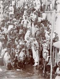| Keywords: Large crowd of people at a bathing ghat along the Ganges (c. 1905-1906).jpg en A large crowd of people at a bathing ghat in Varanasi with the Ganges River in the foreground or 1905 1906 http //www lib cam ac uk/rcs_photo_project/482 html author Custom license marker 2014 09 16 PD-old-100-1923 Uploaded with UploadWizard Ganges River in Hindu worship Cities in India in the 1900s | ||||