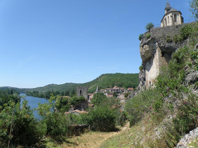 | Keywords: Laroque-des-Arcs20.JPG fr Laroque-des-Arcs commune du Lot France région Midi-Pyrénées A droite rocher situé à la sortie est du bourg que surmonte le terre-plein portant la chapelle Saint-Roch 1842 visible en haut à droite et auquel est adossée une fortification du XIIe ou XIIIe siècle dite château des Anglais Au centre maisons du bourg avec la masse grise et carrée de la tour de péage XIIIe siècle A gauche le Lot Les constructions que l'on discerne au loin tout à gauche un peu en dessous de la ligne d'horizon appartiennent à la banlieue nord de la ville de Cahors Nous regardons vers l'ouest-sud-ouest self-photographed Torsade de Pointes 2010-07 Laroque-des-Arcs Chapels in Lot |