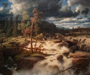 | Keywords: Larson - Waterfall in Smaland.jpg Artwork Creator Marcus Larson 1856 Oil on canvas Institution Nationalmuseum Stockholm object history provenanceEvent bequest 1910 langswitch Frau Mrs fru Anna Wallenberg Nationalmuseum Stockholm credit line accession number 1713 own photo Szilas Nationalmuseum Stockholm Marcus Larson Swedish paintings in the Nationalmuseum Stockholm PD-old-100 | ||||