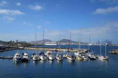 Keywords: las-palmas gran canaria canary islands city venet ship houses sea clouds sky seaside port vessel water beach pier blue marina sunny