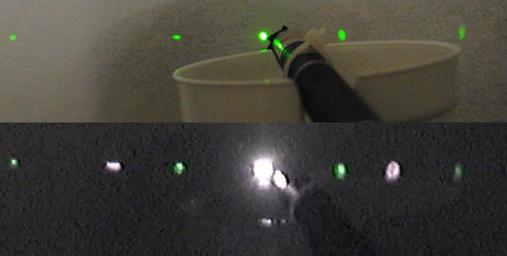 | Keywords: Lasers; Optics (5881383789).jpg IR leakage Top Photo from an ordinary camera shows light from a green laser diffracted into several spots The green laser pointer is visible in the foreground Bottom The same vignette photographed by a webcam with no infrared-blocking filter reveals intense diffraction spots from 808nm infrared light invisible to the eye Credit NIST Disclaimer Any mention of commercial products within NIST web pages is for information only; it does not imply recommendation or endorsement by NIST Use of NIST Information These World Wide Web pages are provided as a public service by the National Institute of Standards and Technology NIST With the exception of material marked as copyrighted information presented on these pages is considered public information and may be distributed or copied Use of appropriate byline/photo/image credits is requested https //www flickr com/photos/usnistgov/5881383789/ Lasers; Optics 2010-08-03 15 17 https //www flickr com/people/63059536 N06 National Institute of Standards and Technology PD-USGov National Institute of Standards and Technology https //flickr com/photos/63059536 N06/5881383789 2016-09-07 02 52 21 United States Government Work Uncategorized 2016 December 20 |