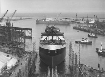 | Keywords: sunderland shipbuilding j.l. thompson & sons ltd jlthompsonsonsltd north sands sunderland northsandssunderland river wear riverwear shipyard tug boats tugboats busiris tanker maritime heritage maritimeheritage black and white photograph blackandwhitephotograph launch north sands shipyard northsandsshipyard 4 october 1960 4october1960 joseph l. thompson & sons josephlthompsonsons 1846 robert thompson & sons robertthompsonsons vessel iron metal steel crane wire sky river construction beam rail platform canvas tent pavement people workers deck cabin bar pole soil debris industry surreal unusual stand box cloth rope doorway window frame glass ship porthole land lighthouse horizon water ripple calm steady ladder mast cylinder pipe letter plate parts vehicle chimney blackandwhite monochrome outdoor waterfront black and white The tanker ‘Busiris’ sliding down the ways at the North Sands shipyard of J.L. Thompson & Sons, Sunderland, 4 October 1960 (TWAM ref. DS.JLT4/PH/1/698/3/3). This set celebrates the achievements of the famous Sunderland shipbuilding firm Joseph L. Thompson & Sons. The company’s origins date back to 1846 when the firm was known as Robert Thompson & Sons. Robert Thompson senior died in 1860, leaving his second son Joseph Lowes Thompson in control. In 1870 the shipyard completed its last wooden vessel and was then adapted for iron shipbuilding. By 1880 the firm had expanded its operations over much of North Sands and in 1884 completed the construction of Manor Quay, which served as fitting out and repair facilities. For many years in the late nineteenth century the yard was the most productive in Sunderland and in 1894 had the fourth largest output of any shipyard in the world. The Depression affected the firm severely in the early 1930s and no vessels were launched from 1931 to 1934. However, during those years the company developed a hull design giving greater efficiency and economy in service. During the Second World War the prototype developed by Joseph L. Thompson & Sons proved so popular that it was used by the US Government as the basis of over 2,700 Liberty ships built at American shipyards between 1942 and 1945. After the War the North Sands shipyard went on to build many fine cargo ships, oil tankers and bulk carriers. Sadly the shipyard closed in 1979, although it briefly reopened in 1986 to construct the crane barge ITM Challenger. (Copyright) We're happy for you to share these digital images within the spirit of The Commons. Please cite 'Tyne & Wear Archives & Museums' when reusing. Certain restrictions on high quality reproductions and commercial use of the original physical version apply though; if you're unsure please email archives@twmuseums.org.uk The tanker ‘Busiris’ sliding down the ways at the North Sands shipyard of J.L. Thompson & Sons, Sunderland, 4 October 1960 (TWAM ref. DS.JLT4/PH/1/698/3/3). This set celebrates the achievements of the famous Sunderland shipbuilding firm Joseph L. Thompson & Sons. The company’s origins date back to 1846 when the firm was known as Robert Thompson & Sons. Robert Thompson senior died in 1860, leaving his second son Joseph Lowes Thompson in control. In 1870 the shipyard completed its last wooden vessel and was then adapted for iron shipbuilding. By 1880 the firm had expanded its operations over much of North Sands and in 1884 completed the construction of Manor Quay, which served as fitting out and repair facilities. For many years in the late nineteenth century the yard was the most productive in Sunderland and in 1894 had the fourth largest output of any shipyard in the world. The Depression affected the firm severely in the early 1930s and no vessels were launched from 1931 to 1934. However, during those years the company developed a hull design giving greater efficiency and economy in service. During the Second World War the prototype developed by Joseph L. Thompson & Sons proved so popular that it was used by the US Government as the basis of over 2,700 Liberty ships built at American shipyards between 1942 and 1945. After the War the North Sands shipyard went on to build many fine cargo ships, oil tankers and bulk carriers. Sadly the shipyard closed in 1979, although it briefly reopened in 1986 to construct the crane barge ITM Challenger. (Copyright) We're happy for you to share these digital images within the spirit of The Commons. Please cite 'Tyne & Wear Archives & Museums' when reusing. Certain restrictions on high quality reproductions and commercial use of the original physical version apply though; if you're unsure please email archives@twmuseums.org.uk |