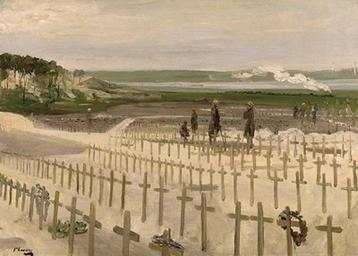 | Keywords: Lavery-Etaples.jpg A view across the cemetery at Étaples showing the rows of simple crosses tended by a group of women In the background a steam train crosses a green landscape 1919 Oil on canvas Size mm 722 524 object history credit line accession number Art IWM ART 2884 1 PD-old-70 Etaples Military Cemetery Collections of the Imperial War Museum John Lavery |