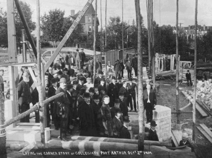 Keywords: port arthur portarthur thunder bay thunderbay p.a.c.i. paci cornerstone construction crowds ceremony port arthur collegiate institute portarthurcollegiateinstitute ontario canada history lakehead university lakeheaduniversity lu waverley park waverleypark schools education blackandwhite monochrome outdoor black and white Date: 2 October 1909 Description: The laying of the cornerstone of the Port Arthur Collegiate Institute. They must have done a good job because 106 years later the building still stands near the juncture of Red River Road (then Arthur Street) and Waverley. It now houses the Lakehead University Law School as well as other LU administration. Accession No.: 974.120.29 Date: 2 October 1909 Description: The laying of the cornerstone of the Port Arthur Collegiate Institute. They must have done a good job because 106 years later the building still stands near the juncture of Red River Road (then Arthur Street) and Waverley. It now houses the Lakehead University Law School as well as other LU administration. Accession No.: 974.120.29 |
