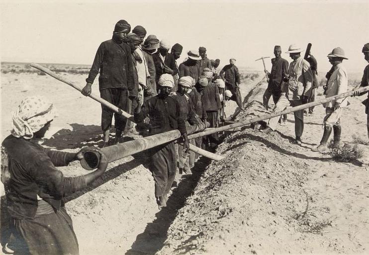 | Keywords: LayingPipes.jpg  en Laying pipes between Kuseineh and Ibu 1915 Library of congresshttp //memory loc gov/phpdata/pageturner php type contactminor cmIMG1 /pnp/ppmsca/13700/13709/00170t gif agg ppmsca item 13709 caption 169 American Colony Photographic department 1915 PD-Matson Matson Collection Sinai and Palestine Campaign |