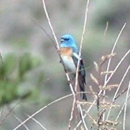 | Keywords: LazuliBunting.JPG Breeding male Lazuli Bunting Passerina amoena in a small tree beside the Rio Grande above Pilar New Mexico taken May 16 2005 with a 2-megapixel Bushnell Instant Replay binocular camera by Jerry Friedman Yes it's a little blurry so I hope someone uploads a better picture Passerina amoena |