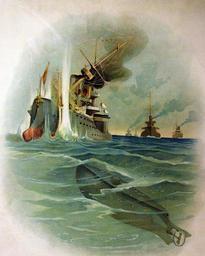 | Keywords: drawing surreal LC-USZ62-50131: Submarine Boat Holland torpedoing ship. Color lithograph by Koerner & Hayes. Courtesy of the Library of Congress. (5/8/2015). LC-USZ62-50131: Submarine Boat Holland torpedoing ship. Color lithograph by Koerner & Hayes. Courtesy of the Library of Congress. (5/8/2015). |