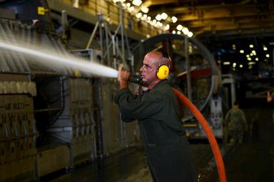 | Keywords: LCAC Operations 160922-N-GB113-052.jpg en 160922-N-GB113-052 ATLANTIC OCEAN Sept 22 2016 Boatswain's Mate 2nd Class Anthony Pacitto uses a fresh water hose to wash salt water off of a landing craft air cushion in the well deck of the amphibious assault ship USS Bataan LHD 5 Bataan is currently conducting Amphibious Squadron 8 and 24th Marine Expeditionary Unit integrated training U S Navy photo by Mass Communication Specialist Seaman Apprentice Zachariah Grabill/Released <br>Unit USS Bataan LHD 5 2016-09-22 Chief Petty Officer Anastasia McCarroll https //www dvidshub net/image/2875292/lcac-operations 160922-N-GB113-052 2016-09-23 11 28 NORFOLK VA US PD-USGov-Military-Navy USS Bataan LHD-5 24th Marine Expeditionary Unit Images from DoD uploaded by FĂŚ |