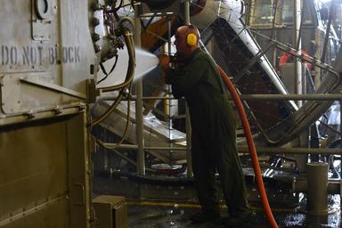 | Keywords: LCAC Operations 160922-N-GB113-042.jpg en 160922-N-GB113-042 ATLANTIC OCEAN Sept 22 2016 Boatswain's Mate 2nd Class Anthony Pacitto uses a fresh water hose to wash salt water off of an Air Cushion Landing Craft LCAC in the well deck of the amphibious assault ship USS Bataan LHD 5 Bataan is currently conducting Amphibious Squadron 8 and 24th Marine Expeditionary Unit integrated training U S Navy photo by Mass Communication Specialist Seaman Apprentice Zachariah Grabill/Released <br>Unit USS Bataan LHD 5 2016-09-22 Chief Petty Officer Anastasia McCarroll https //www dvidshub net/image/2875289/lcac-operations 160922-N-GB113-042 2016-09-23 11 43 NORFOLK VA US PD-USGov-Military-Navy USS Bataan LHD-5 24th Marine Expeditionary Unit Images from DoD uploaded by FĂŚ |