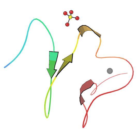 Keywords: LDLR Binding Module5 1ajj.PNG The structure of ligand-binding repeat 5 LR5 of the en LDL Receptor which contains a calcium ion grey coordinated by acidic residues that lie at the carboxy-terminal end of the domain and a sulfate ion yellow and red spheres Mutations affecting the coordination of the calcium or otherwise alter the structure of this domain are found in patients with the disease familial hypercholesterolaemia self-made using King v 2 12 http //kinemage biochem duke edu using Protein Data Bank coordinates at http //www rcsb org/pdb/cgi/explore cgi pdbId 1ajj 2008-01-10 InfoCan all rights released Ribbon diagrams |