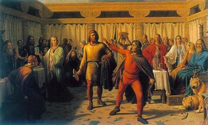 Keywords: Le fête d'Aegir (1861).jpg Artwork creator C Hansen 1861 oil on canvas x cm accession number object history credit line C Hansen 1861 PD-old-100 Ægir Loki Thor Urðarbrunnr 1861 paintings