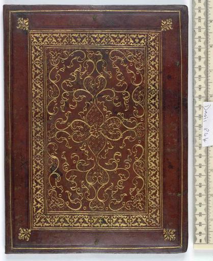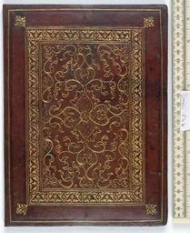 | Keywords: Le panneaux d'ornaments - Suite de 21 estampes - Upper cover (Davis844).jpg Style All over design Panel design; Caption Upper cover; Colour Brown; Edge Sprinkled red exhibition history Decorative Technique Tooled in gold; Cover Material Goatskin includes morocco turkey etc Macchi states; Venice c1560 Bound by the Leermaureskenmeister I Schunke Venezianische Renaissance- Einbände p 182-183 About 30 the known works of this bindery F Malaguzzi Preziosi in biblioteca p 405-409 See also not digitised Add Ms 41145 Eg Ms 757 object history Text 16c; s l ; Unspecified object type Cc-zero place of creation Binding Italy place of discovery Anthony Hobson Paul Culot Italian and French 16th-century bookbindings Brussels 1991 Laura Nuvoloni Commissioni dogal bookbindings in the British Library 'For the love of binding' Studies in bookbinding history presented to Mirjam Foot 2000 pp 81-109 fig 16 M M Foot the Henry Davis Gift vol III British Library image http //www bl uk/catalogues/bookbindings/LargeImage aspx RecordId 020-000005050 ImageId ImageId 42130 Copyright BL Le panneaux d'ornaments - Suite de 21 estampes Uploaded with GWToolset Le panneaux d'ornaments - Suite de 21 estampes - Upper cover Davis844 http //www webarchive org uk/bldatasets/bindings/6708_4 jpg Bookbinding 16th-century bookbinding British Library Bookbindings |