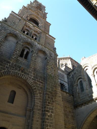 | Keywords: Le Puy-en-Velay Cathédrale Clocher5.JPG Le Puy-en-Velay préf de la Haute-Loire France <br/> Aspect du clocher de la cathédrale Notre-Dame à droite porche Saint-Jean situé dans l'angle entre le bras nord du transept et le choeur avec son arc surbaissé Tour de croisée octogonale au centre Moi Torsade de Pointes 2009-08 Clocher de la cathédrale Notre-Dame du Puy-en-Velay | ||||