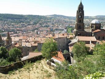 | Keywords: Le Puy-en-Velay Vue générale1.JPG Le Puy-en-Velay préf de la Haute-Loire France <br/> Vue générale depuis le flanc sud-ouest du rocher Corneille ; coup d'oeil vers le sud On aperçoit <br/> - à droite le clocher et la tour de croisée octogonale de la cathédrale Notre-Dame ;<br/> - à gauche du clocher frondaisons du jardin Vinay bordé au sud par le musée Crozatier non visible sur ce cliché ;<br/> - à gauche du jardin Vinay la vaste place Michelet ;<br/> - tout à fait à gauche et plus près de nous les deux clochers au comble bigarré appartenant à la chapelle du Séminaire ;<br/> - un peu à droite de cette dernière mais plus éloignée la silhouette brun sombre de léglise Saint-Pierre-des-Carmes avec ses deux tours octogonales sans flèche séparées par le pignon triangulaire de la façade occidentale Own Torsade de Pointes 2009-08 Vues générales sur Le Puy-en-Velay Clocher de la cathédrale Notre-Dame du Puy-en-Velay |